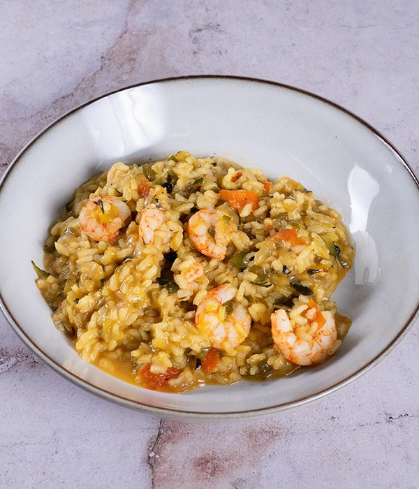 Te sorprendemos con nuestro Arroz Meloso de Calabacín y Gambas, un plato que celebra la sutileza del mar y el campo en una sola cucharada. Aquí, el arroz, cocido hasta alcanzar una textura irresistiblemente cremosa, sirve de lienzo a la delicadeza de las gambas y la frescura del calabacín. Es un plato que equilibra a la perfección el sabor suave del vegetal con el toque marino de las gambas, invitando a un viaje sensorial con cada bocado. Ideal para aquellos que buscan deleitarse con sabores ligeros pero llenos de carácter.
