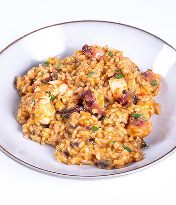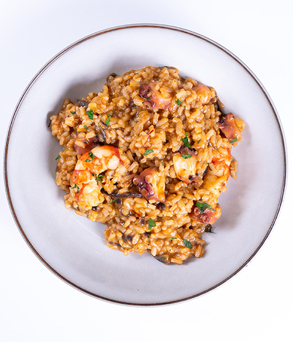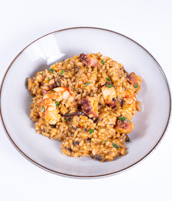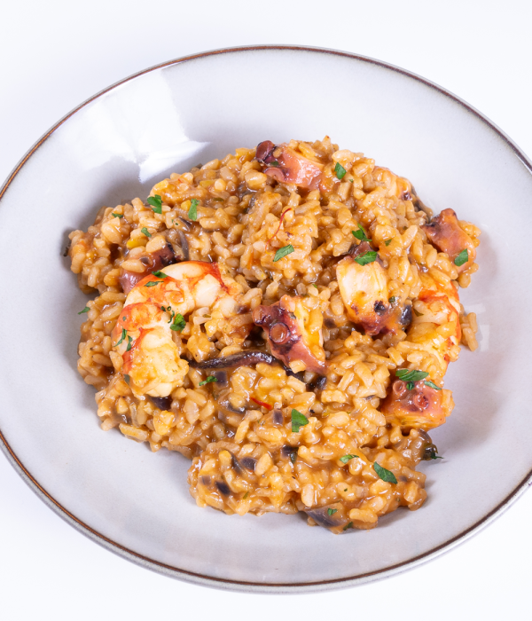 Os invitamos a sumergiros en el fondo del mar con nuestro Arroz Meloso de Pulpo y Gambones, un plato que destila esencia oceánica en cada grano. El arroz, cocido justo al punto de melosidad, se enriquece con el pulpo tierno y los gambones jugosos, creando un mosaico de sabores y texturas marinas. Es un homenaje a la cocina costera, pensado para transportar al comensal a una orilla bañada por el sol, donde el aroma del mar se entremezcla con el placer de una comida hecha arte. Ideal para los amantes de los frutos del mar que buscan confort en sus platos.