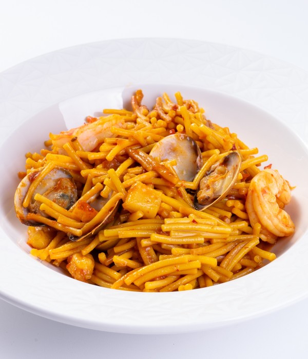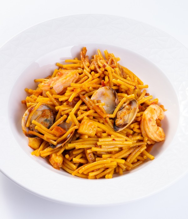 Nuestra fideuá de marisco está elaborada con un fondo de pescado casero que concentra toda la esencia del mar. Los fideos se tuestan antes de mezclarse con un sofrito de tomate y pimiento choricero, chocos, almejas y langostinos. El resultado es un plato lleno de sabor, con ese punto dorado y meloso que convierte cada ración en puro Mediterráneo.Listo para regenerar y disfrutar como recién hecho.