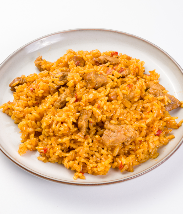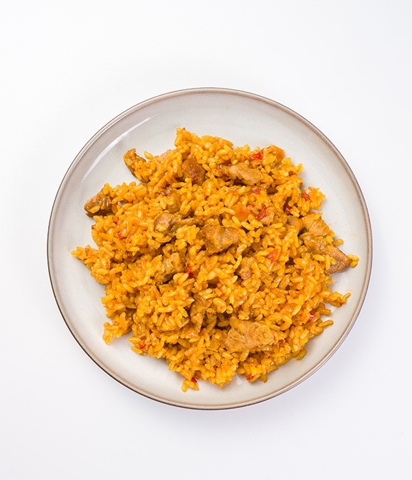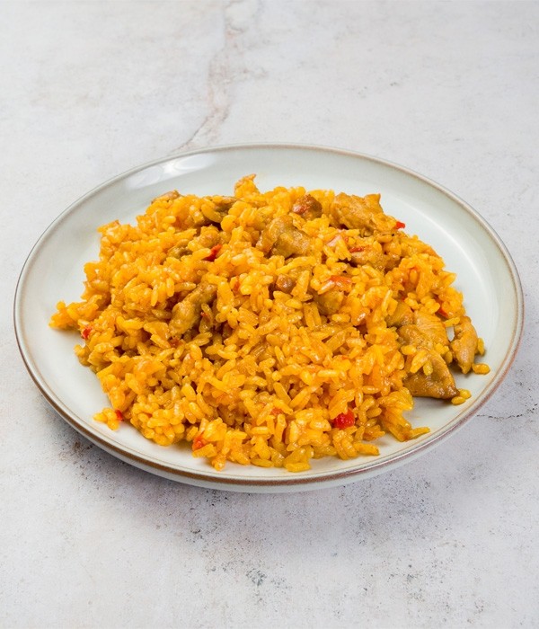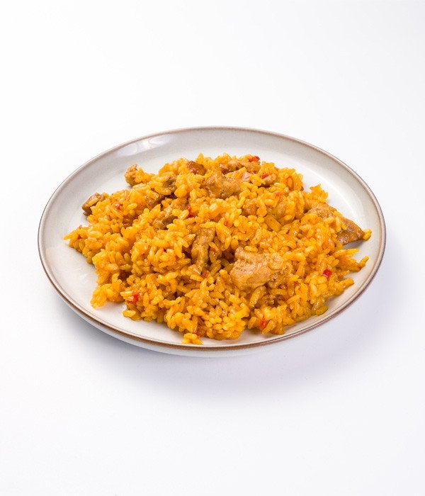 Te ofrecemos un arroz en su punto perfecto, suelto, sabroso, que parte de un buen sofrito elaborado con verduras frescas y aceite de oliva virgen extra y con lagartito de cerdo Ibérico, un delicioso corte del cerdo que toma su nombre por su forma alargada, concretamente es un cordón del lomo, una carne muy jugosa que tiene un alto contenido en grasa infiltrada con un sabor intenso que en Qchara potenciamos marcando previamente con aceite de oliva virgen extra - que ahumamos con virutas de madera de nogal americano -, y aderezamos con pimentón de La Vera.