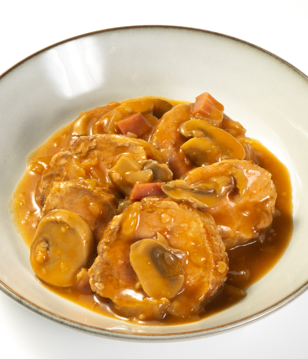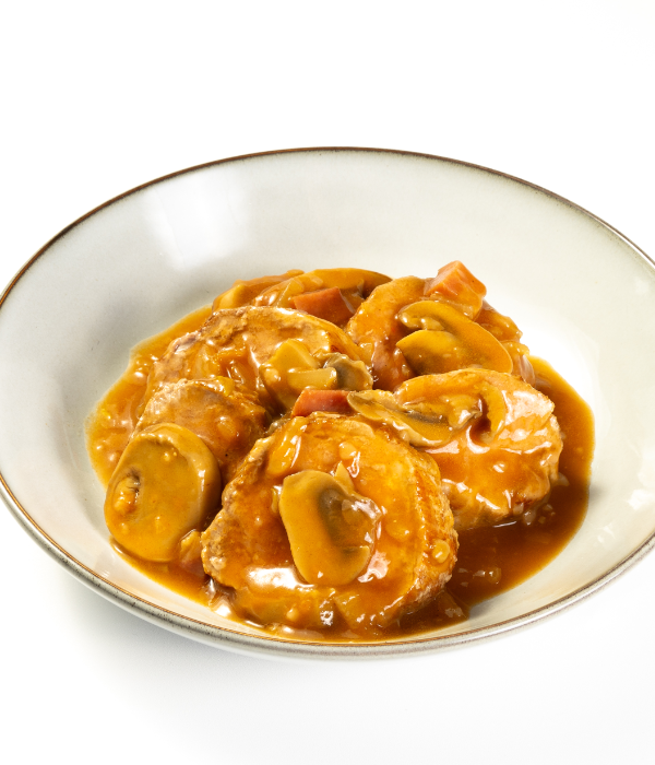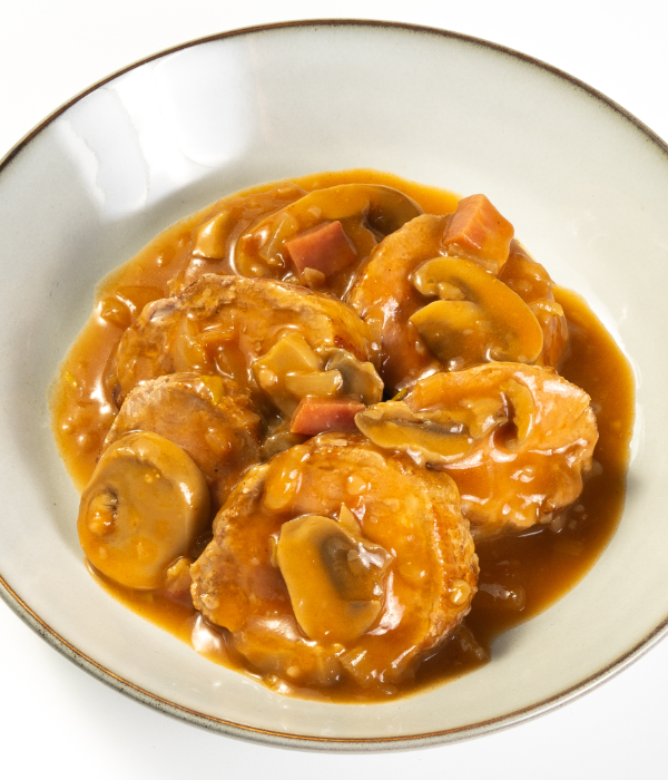 El solomillo de cerdo en salsa castellana lleva el sello de lo tradicional, con un toque robusto y reconfortante. El solomillo, dorado y jugoso, se sumerge en una salsa rica y profunda que combina vino tinto, ajo, cebolla y caldo, con champiñones y taquitos de jamón para añadir sabor y textura. Desde el primer momento, los aromas te envuelven, y el sabor es pura armonía.