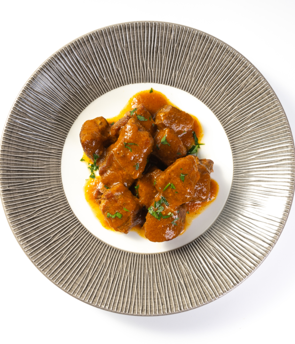 INGREDIENTES: Cabecero de lomo de cerdo (49%),salsa de verdura [agua, cebolla, zanahoria,tomate triturado, aceite de oliva virgen extra, vino tinto, ajo,azúcar, sal, pimienta negra, tomillo, pimienta negra].