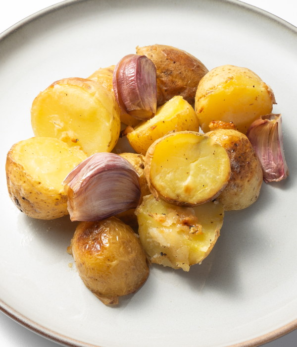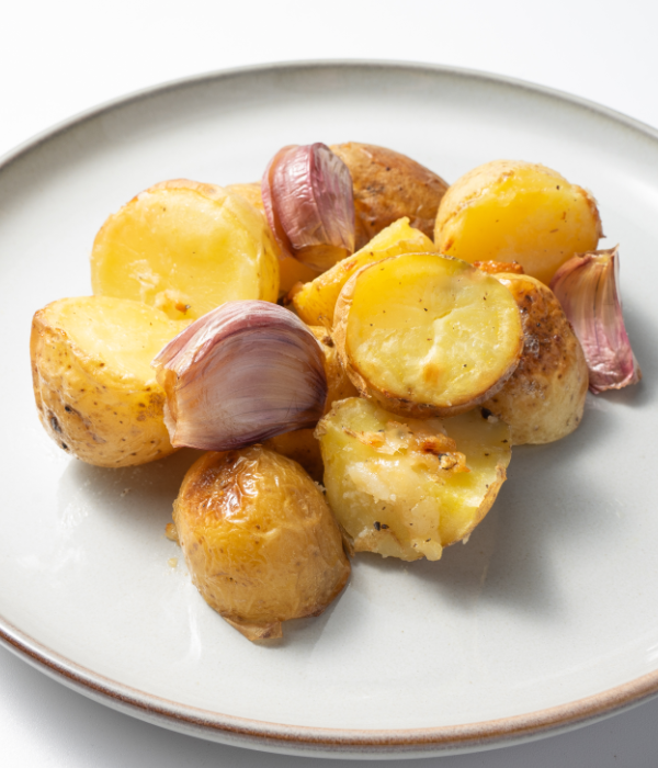 Estas patatas al horno con mantequilla de ajo asado son el Messi de las guarniciones: sencillas, deliciosas y con un toque de clase que las convierte en protagonistas del plato. La mantequilla con ajo es puro lujo, y la pimienta negra, el regate final que sorprende. ¡Una jugada maestra en cada bocado!