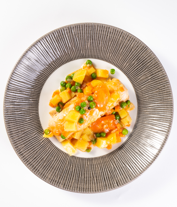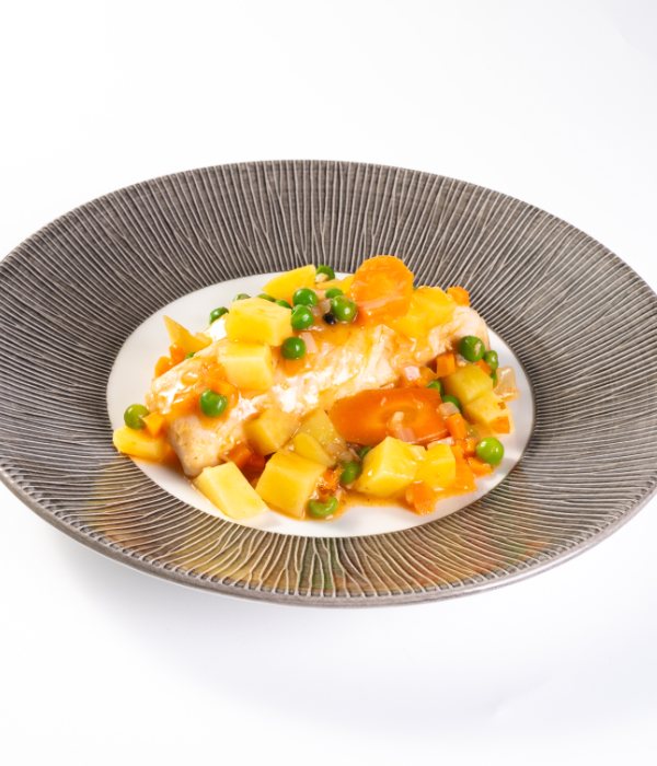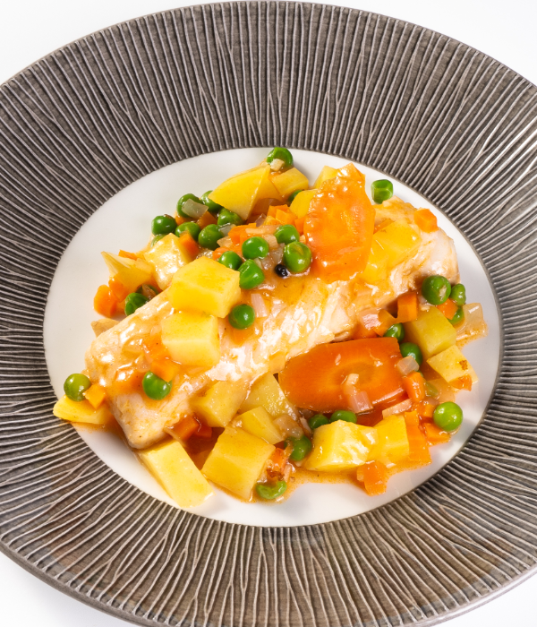 La suprema de merluza a la jardinera es un plato que destila elegancia y sabor con cada ‘tenedorada’. Esta delicada pieza de merluza, cocinada a la perfección, se acompaña de una colorida selección de verduras frescas, cocidas al punto justo para mantener su textura crujiente y su vibrante color. La combinación de los jugosos filetes de pescado con el dulzor natural de las verduras crea un equilibrio perfecto en el paladar, ofreciendo una comida ligera pero satisfactoria. Ideal para aquellos que buscan un plato nutritivo sin renunciar al placer de una buena mesa. Un verdadero homenaje a los sabores del mar y la tierra.