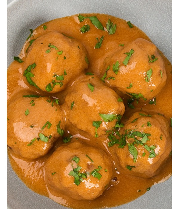 Ya sólo las albóndigas aún ‘a palo seco’ son para ponerles un monumento, pero la salsa… ay la salsa, eso es punto y aparte, un estilo marinera con sus verduras, su tomate frito y su pimentón de La Vera pero con manzanilla de Sanlúcar, vamos, de las dignas de 'mojeteo'...