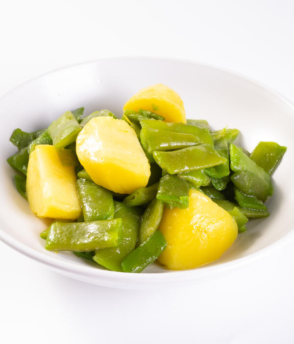 Un clásico de la cocina casera que te devuelve a la mesa de la infancia, donde todo sabía mejor. Las judías, tiernas pero con ese punto crujiente, se abrazan a la patata suave y mantequillosa, creando una danza de texturas que deleita el paladar. Un chorrito de aceite de oliva virgen extra, un toque de sal y quizás un poco de ajo, y ya tienes una maravilla sencilla pero llena de sabor. Es el plato que te hace sentir bien, que te recuerda que en la simplicidad está el verdadero gusto. ¡Una delicia de toda la vida!
