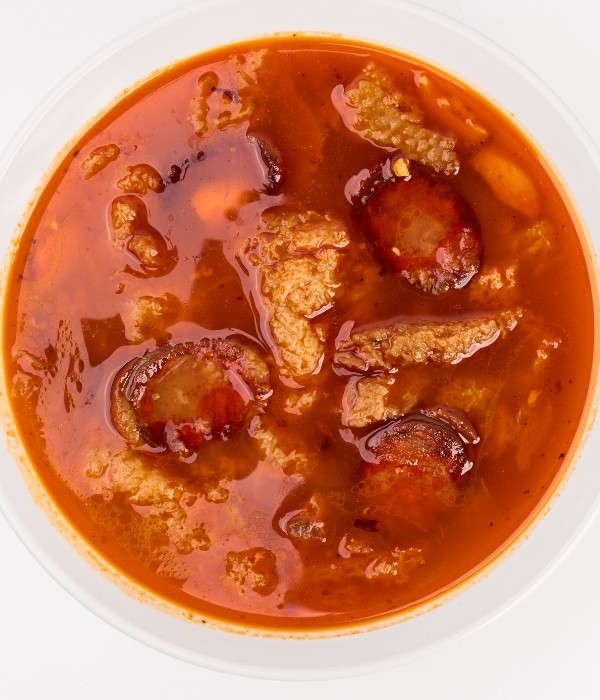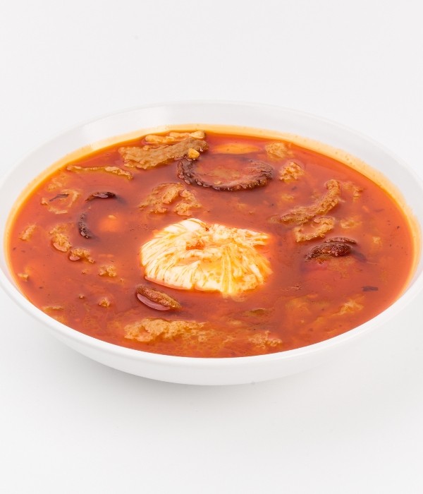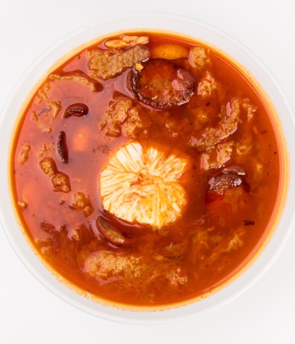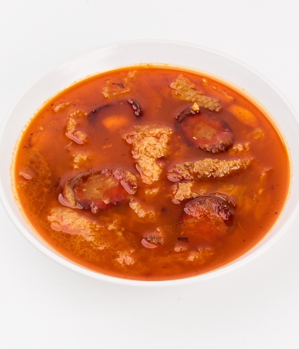 Como te cuento este plato lo preparaban los pastores en épocas donde la hambruna causaba estragos. Era tan simple como rico; agua, pan duro, ajo, sal y pimentón. Hoy en día además le podemos poner un buen chorizo, jamón y cambiar el agua por un buen caldo de pollo. También se suele tomar con un huevito escalfado, que le da una cremosidad especial, así que como nosotros no te lo podemos mandar porque no quedaría con la textura adecuada, te recomendamos que este tupper te lo calientes en un cazo, le eches tú el huevo y lo dejes cocer en la sopa dos o tres minutos. Verás qué platazo tan rico.