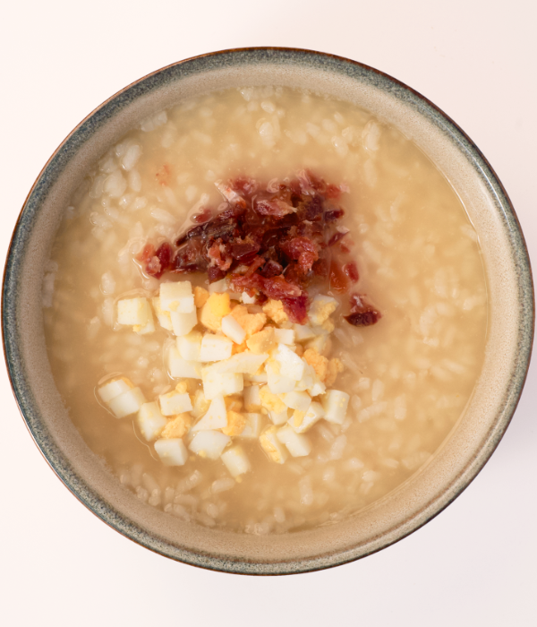 INGREDIENTES: Caldo de pollo [agua, carcasas de pollo (21%), cebolla, puerro, zanahoria, apio (APIO)], arroz, huevo (HUEVO), pollo (4%), taquitos de jamón (3%), zanahoria, sal.
